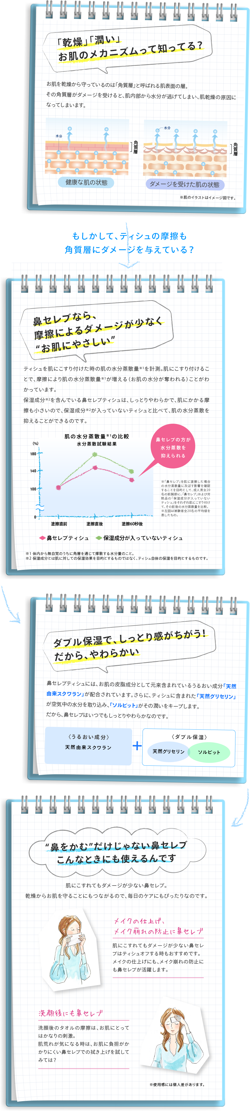 ネピアさんのHPによると、保湿成分の入っていないティッシュよりも鼻セレブの方が、