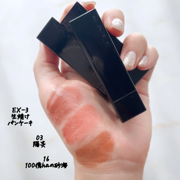 EX-3 生焼けパンケーキの方がベージュ感強めで、16 100億haの砂海の方がブラウン味があります。